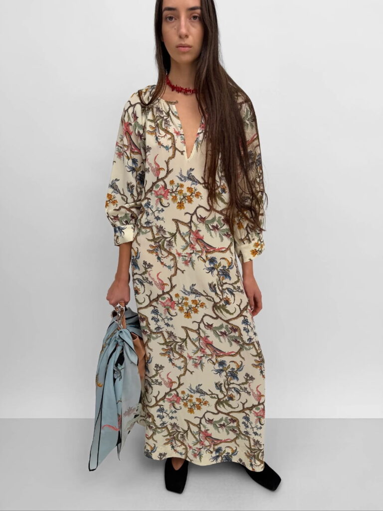 THE WINDY LIGHT SILK DRESS IN TRAILING, cream multi