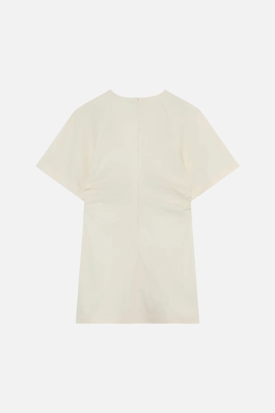 A CLEAN, CONTEMPORARY MINI DRESS IN LIGHT GREY WITH A STRUCTURED YET EFFORTLESS SILHOUETTE.