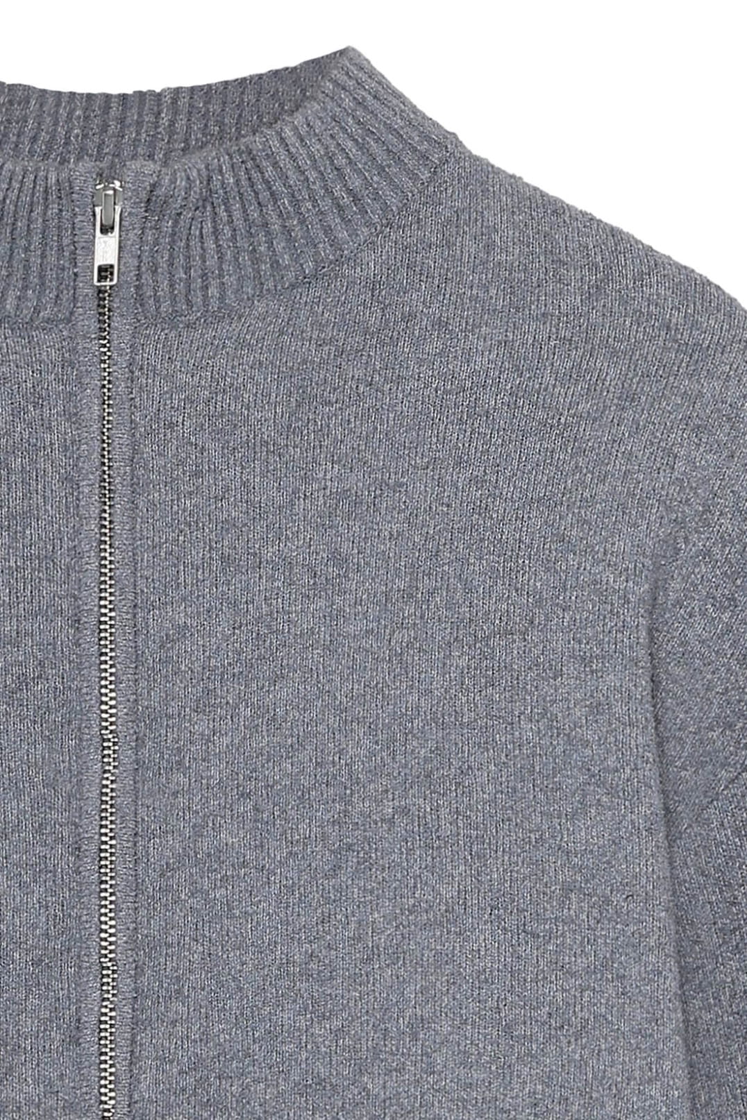 THE STYLE FEATURES A HIGH NECK, A TWO-WAY FRONT ZIP CLOSURE, AND REVERSED SEAMS ALONG THE SHOULDERS AND SLEEVES FOR A MODERN, LAID-BACK LOOK.