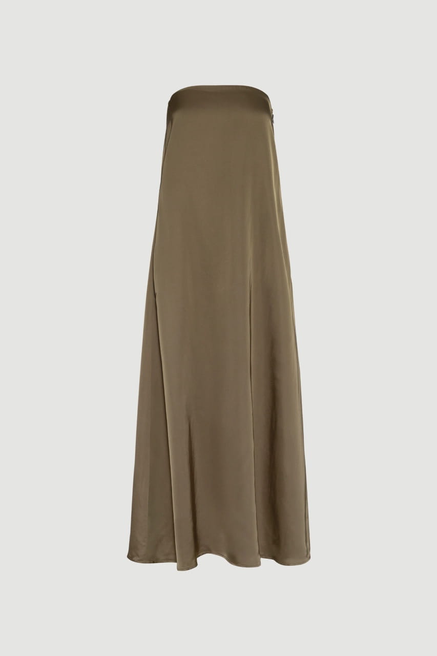 DESIGNED WITH A SOFTLY DRAPED ROUND NECKLINE, A FLOWING MAXI LENGTH, AND A SUBTLE SIDE SLIT, IT OFFERS AN ELEGANT YET EFFORTLESS SILHOUETTE.