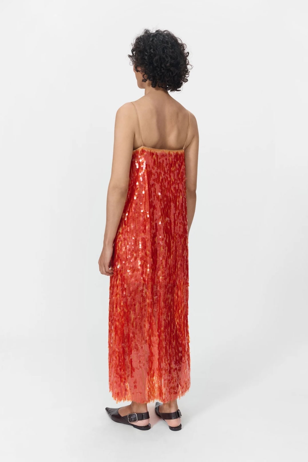 THE COCO DRESS FROM LOVECHILD 1979 IS AN ELEGANT LONG DRESS IN AN EYE-CATCHING BRIGHT ORANGE COLOR.