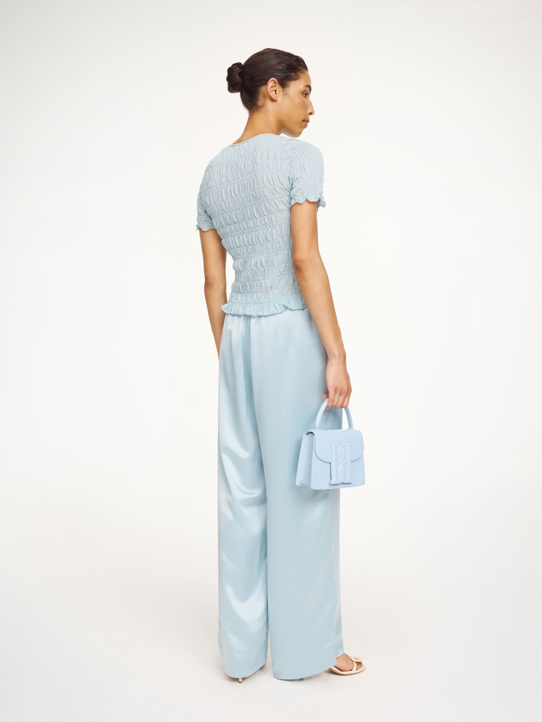 IT’S DESIGNED IN A SEMI-SHEER FABRICATION WITH A TACTILE SMOCK PATTERN.
