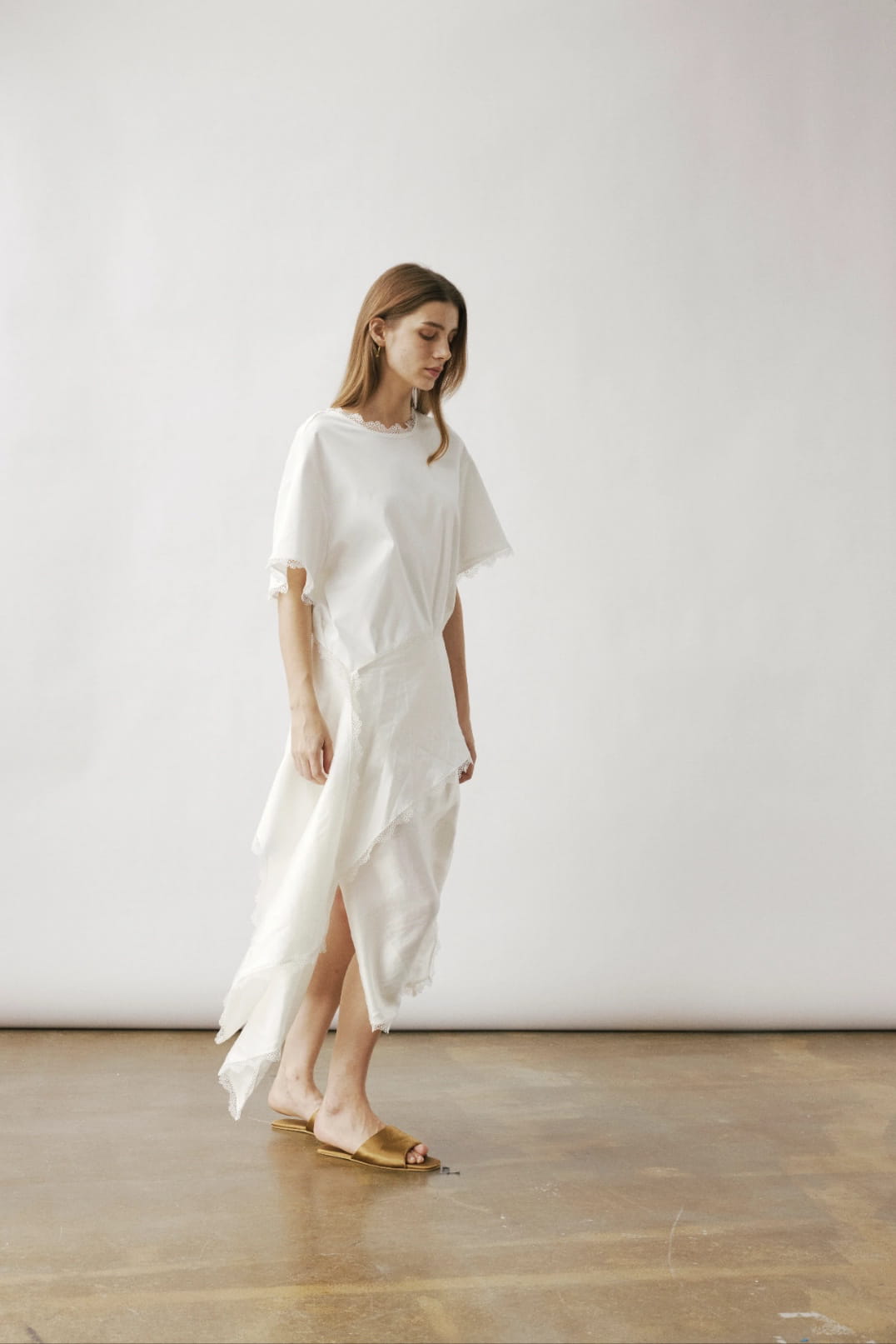 LONG SKIRT FINISHED WITH DELICATE LACE TRIM ALONG THE HEM, ECHOING THE ROMANTIC DETAIL FROM THE SLEEVES OF THE MATCHING T-SHIRT.