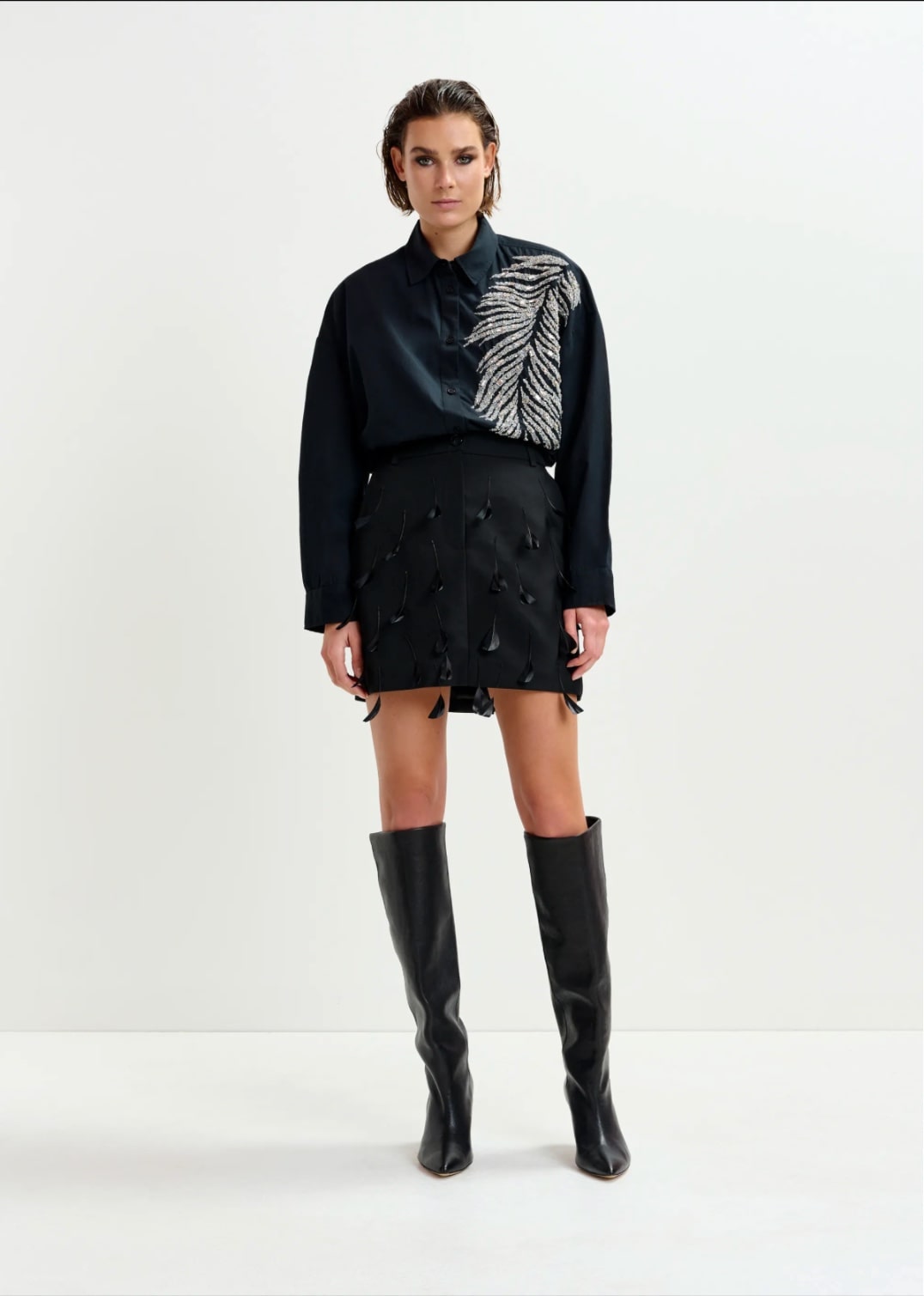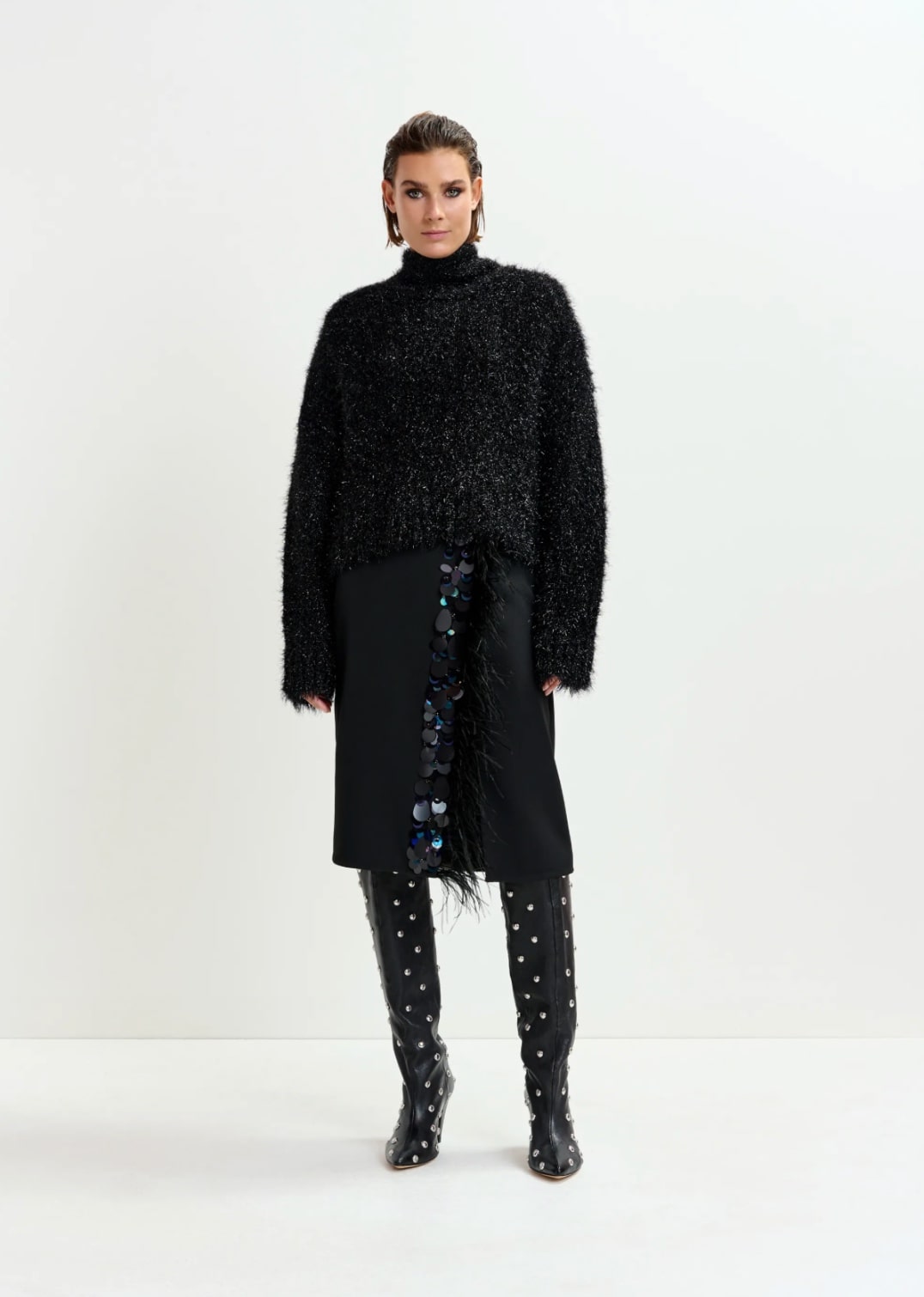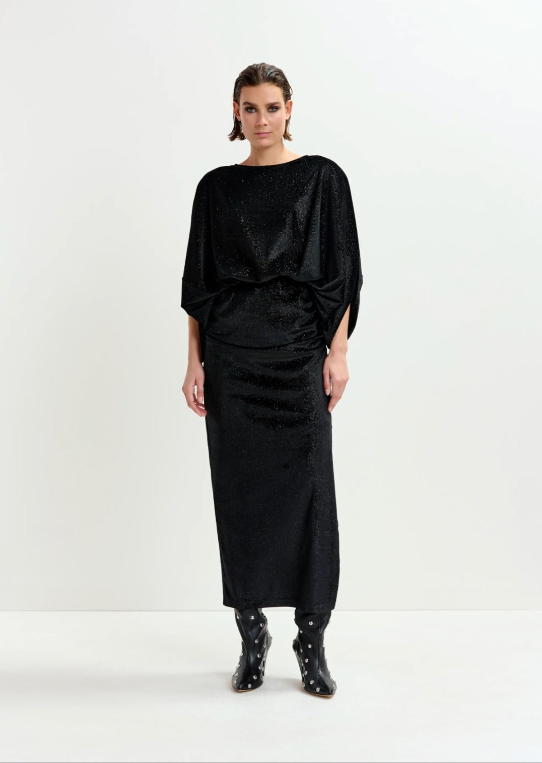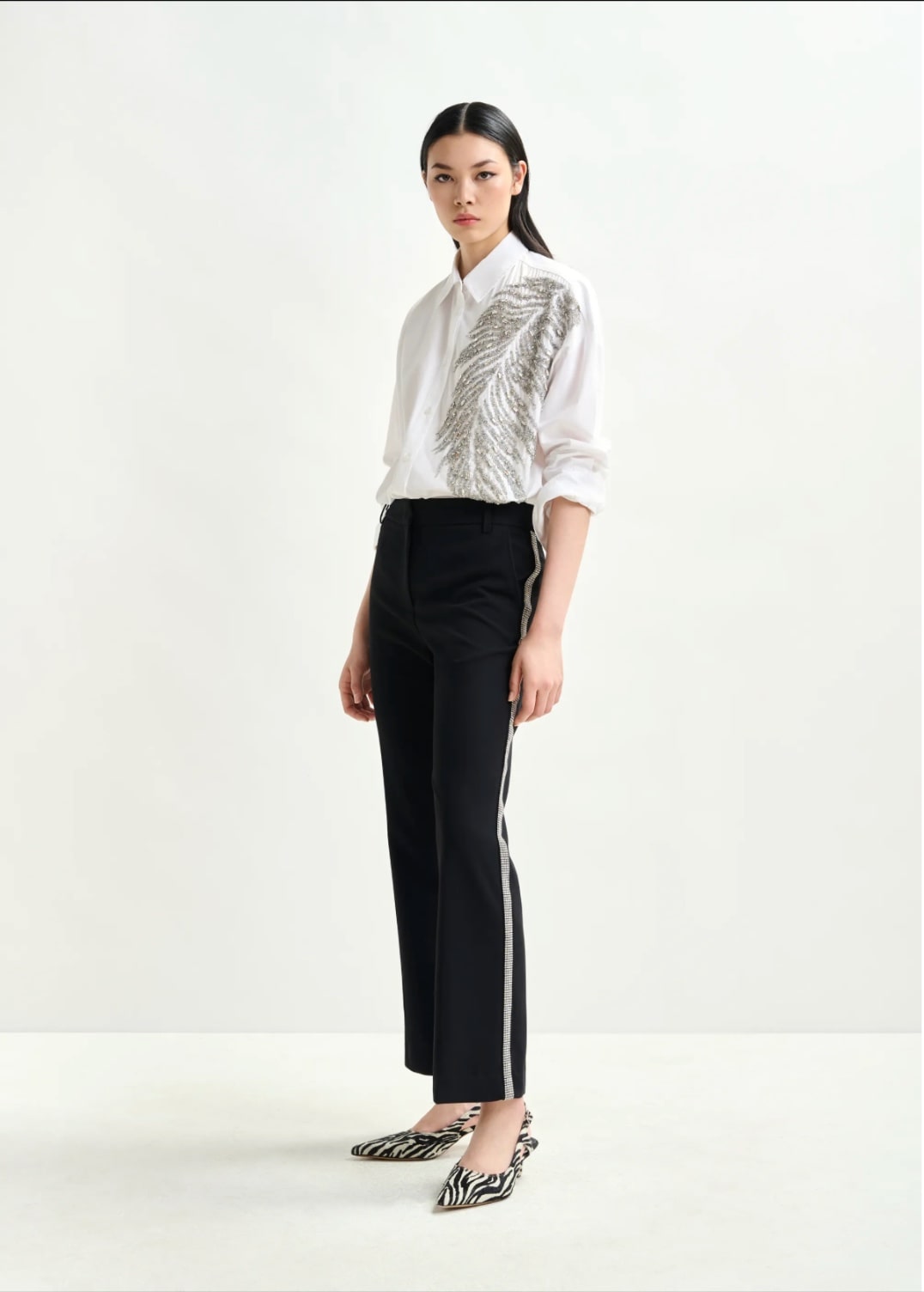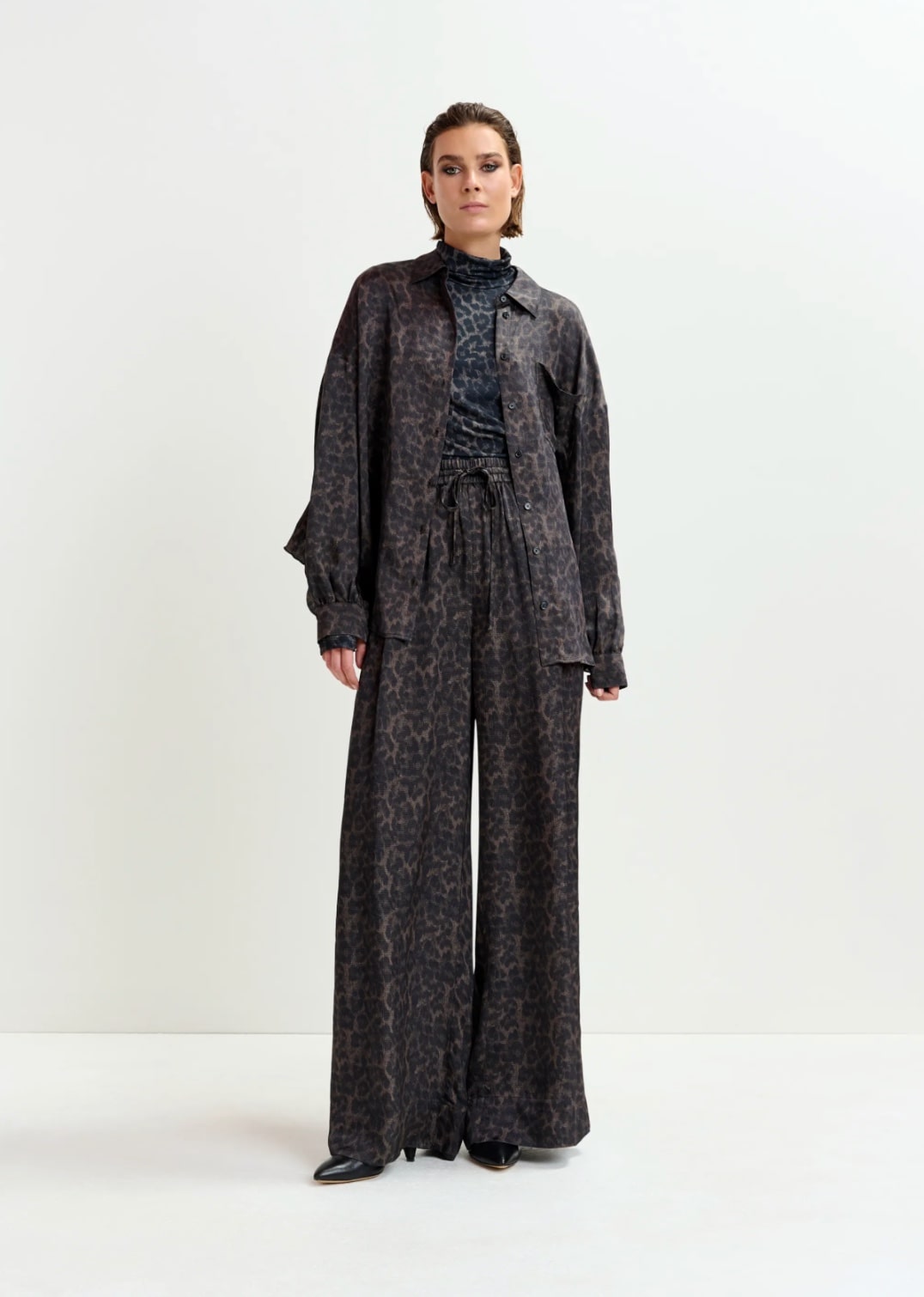 SMARTLY DETAILED WITH PLEATS AT THE WAIST, THE TAILORED CONSTRUCTION ALLOWS THE FABRIC TO FALL INTO FLUID FOLDS THROUGH THE POOLING WIDE LEG.
