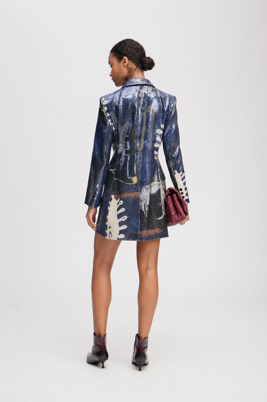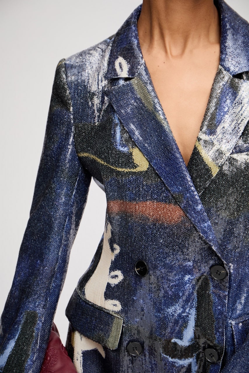 LONG ELEGANT BLAZER WITH A BEAUTIFUL ALL-OVER SEQUIN PRINT.