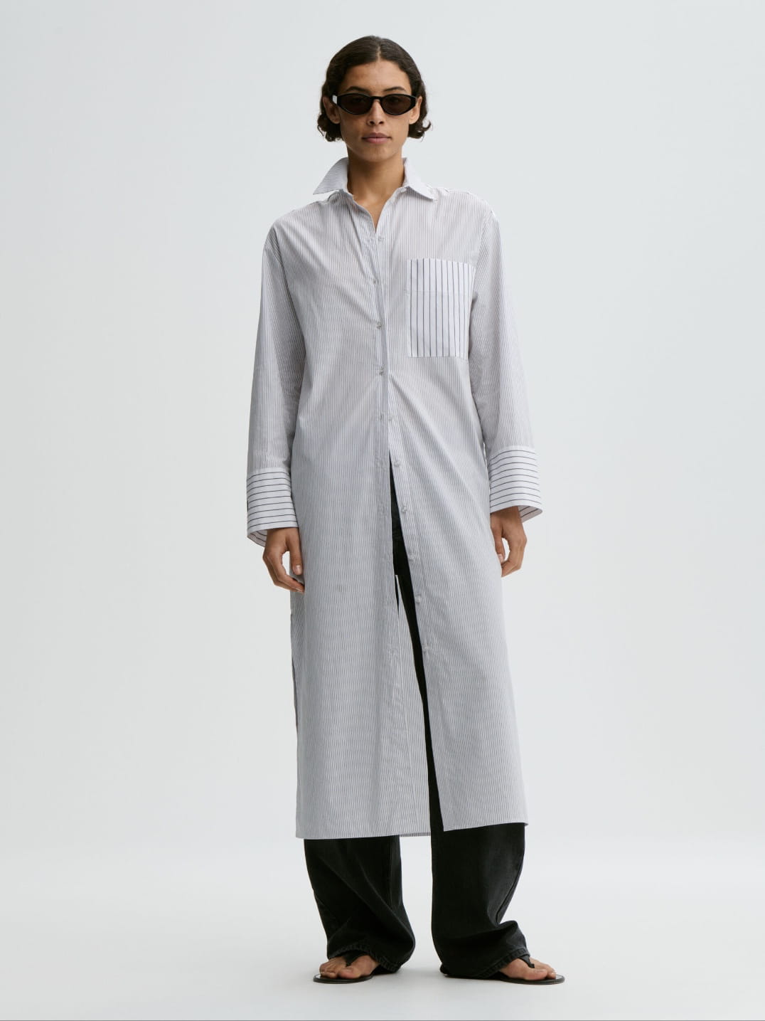 CUT IN ORGANIC COTTON, THE FITTED UPPER IS CONTRASTED WITH A VOLUMINOUS BOTTOM.