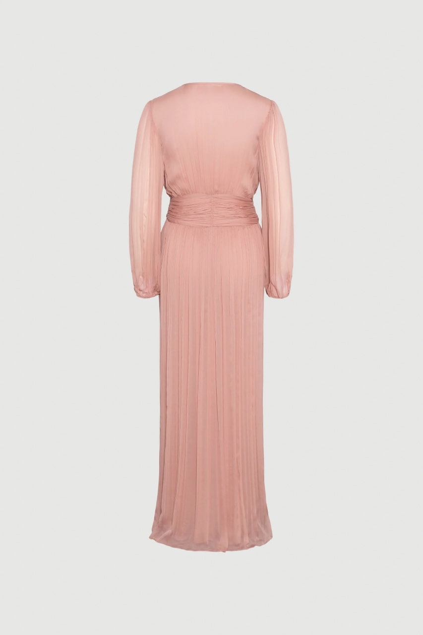 WITH A RELAXED FIT AND DEFINED WAIST, THIS DRESS FEATURES LONG, RELAXED SLEEVES, A FLATTERING V-NECK, AND A MAXI LENGTH.