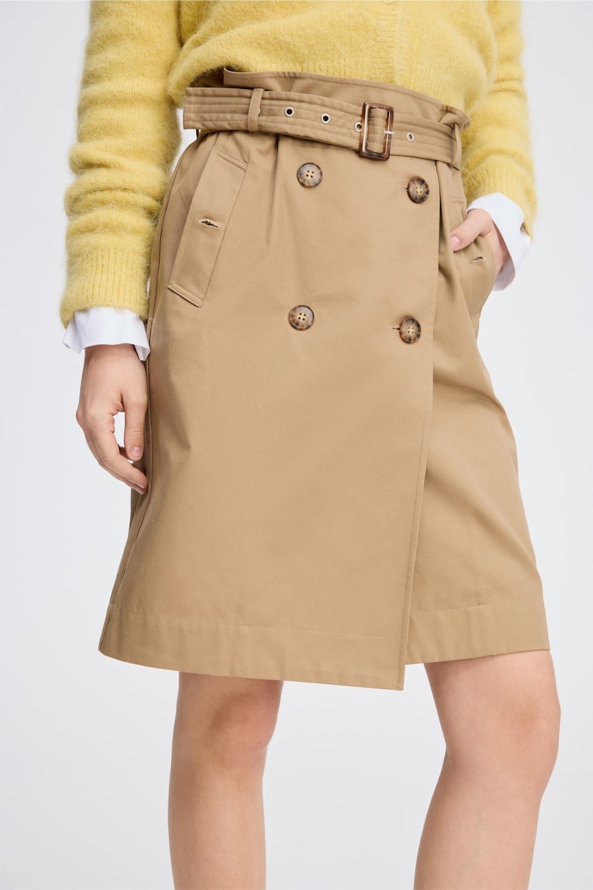 CLASSIC SKIRT WITH DECORATIVE DOUBLE-BREASTED BUTTONS AND A BEAUTIFUL BELT AT THE WAIST.