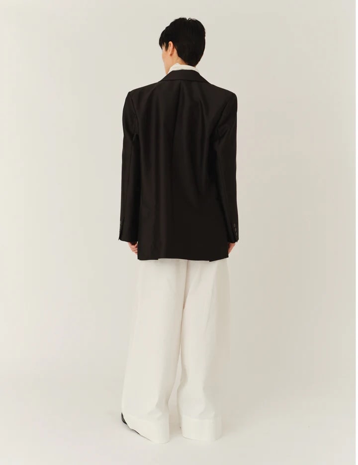THE UMAMI BLAZER IS A CRAFTED STATEMENT PIECE, DISTINGUISHED BY A BEAUTIFUL BOW-LIKE DETAIL ON THE CHEST POCKET.