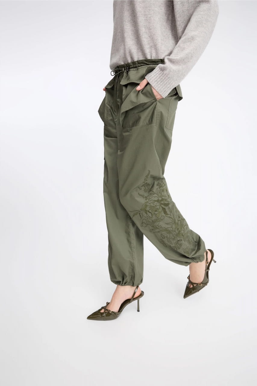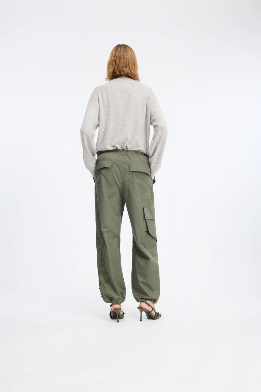 CARGO PANTS DESIGNED FOR A LOOSE FIT, WITH A BEAUTIFUL TONE IN TONE EMBROIDERY ON THE LEG.