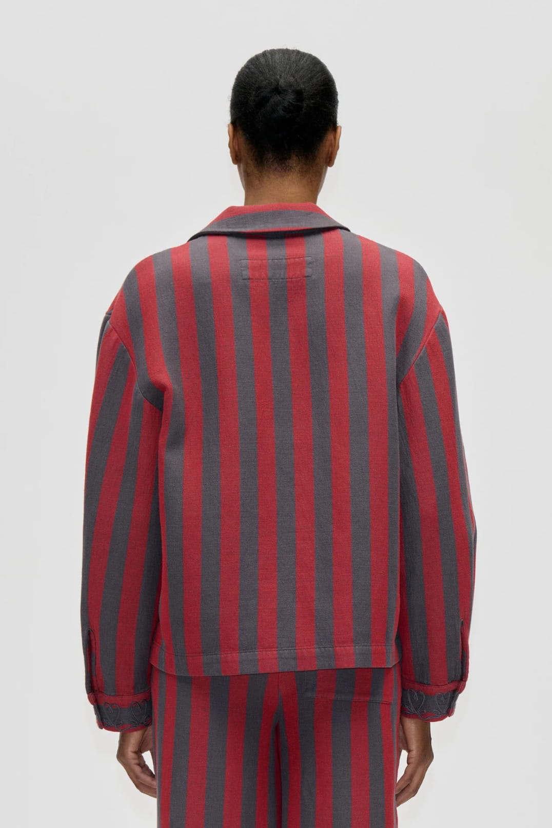 BOXY STRIPED JACKET CRAFTED FROM A STRUCTURED COTTON-LINEN BLEND.